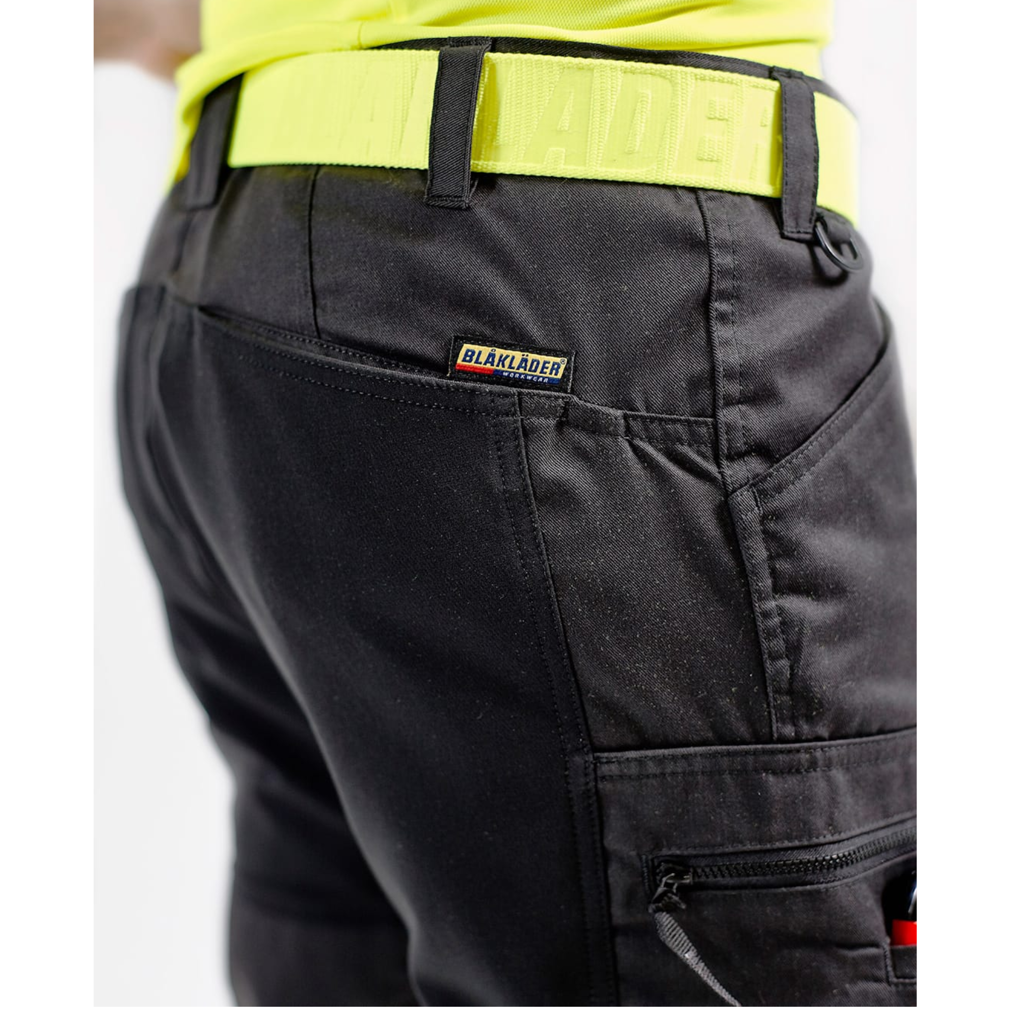 Blåkläder 1551 Hi-Vis Stretch -housut on suunniteltu työskentelyyn, jossa tarvitaan erinomaista liikkuvuutta, näkyvyyttä ja kestävyyttä. Joustavat stretch-paneelit haaroissa, lantiolla ja polvissa tekevät housuista erittäin mukavat koko päivän käyttöön. CORDURA®-stretch -vahvistetut polvisuojataskut kestävät kovaa kulutusta, ja vettähylkivä twill-kangas suojaa roiskeilta ja lialta. Sertifioitu EN ISO 20471 luokka 1. Polvisuojataskuihin sopivat 4027-polvisuojat.