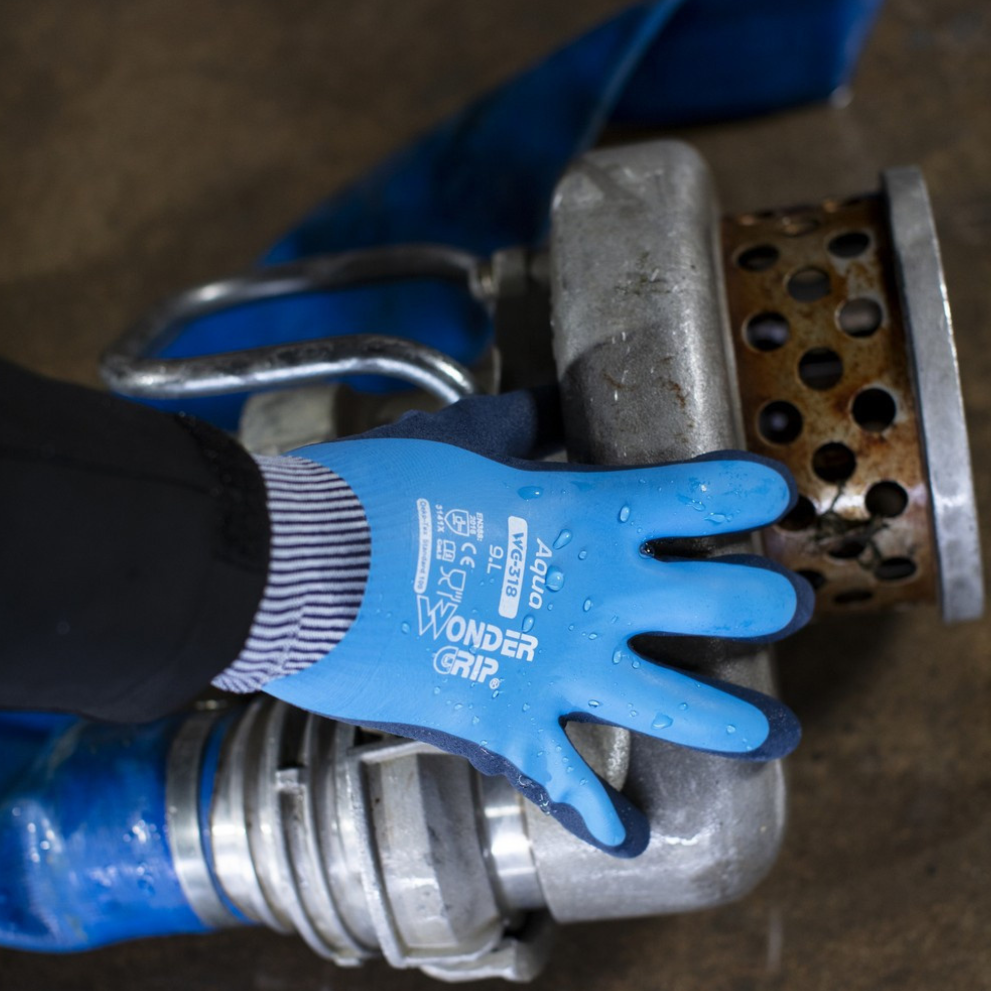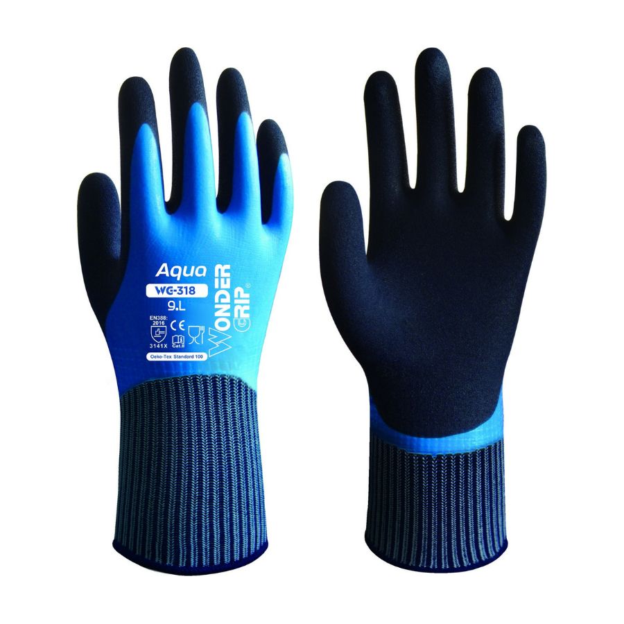 WG-318 Aqua suojakäsine yhdistää vedenpitävyyden, mukavuuden ja kestävyyden, tehden siitä täydellisen valinnan märkiin ja haastaviin työtehtäviin.