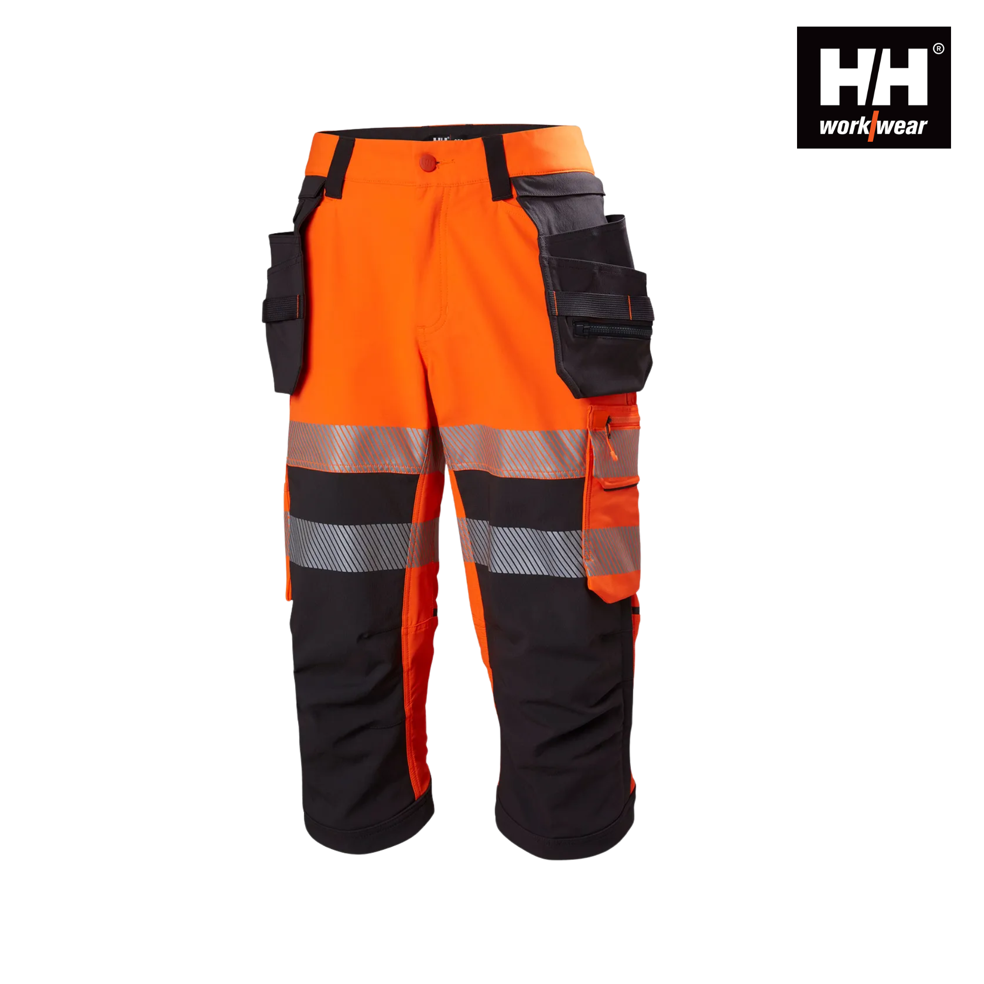 ICU BRZ Hi-Vis Piraattihousut. Tyylikkäät ja käytännölliset 3/4-mittaiset huomioväriset työhousut, jotka on suunniteltu lämpimiin työolosuhteisiin ja aktiiviseen liikkumiseen. ICU BRZ -malliston housut yhdistävät kevyen ja joustavan materiaalin erinomaiseen näkyvyyteen ja käyttömukavuuteen. Piraattipituus tarjoaa viileämmän vaihtoehdon kesäkauteen, säilyttäen silti täydet työvaatteen suojaominaisuudet ja kestävyyden.
