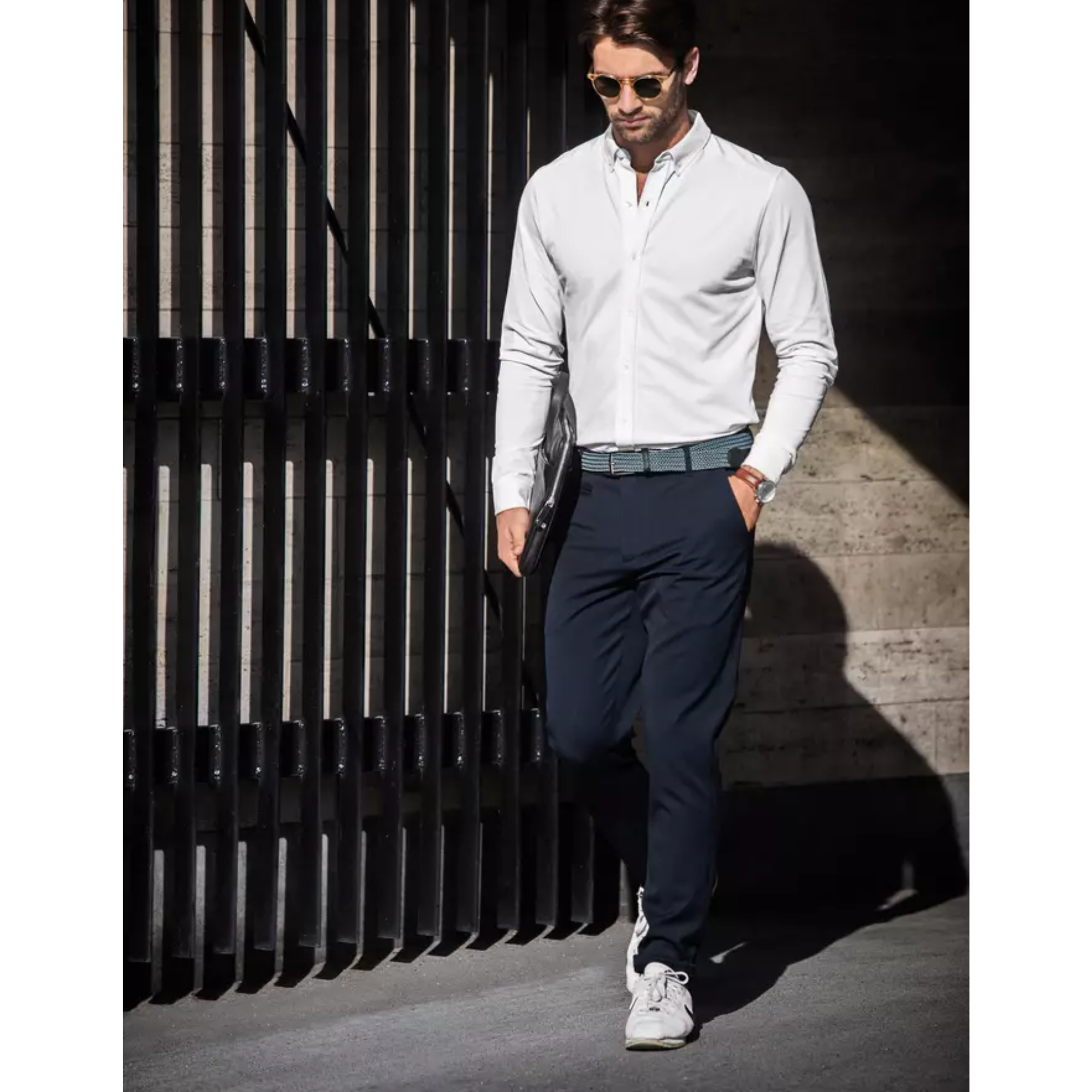 Voit yhdistää paidan helposti esimerkiksi chinoihin ja tennareihin – lopputulos on siisti ja moderni. Hajakokoja jäljellä.