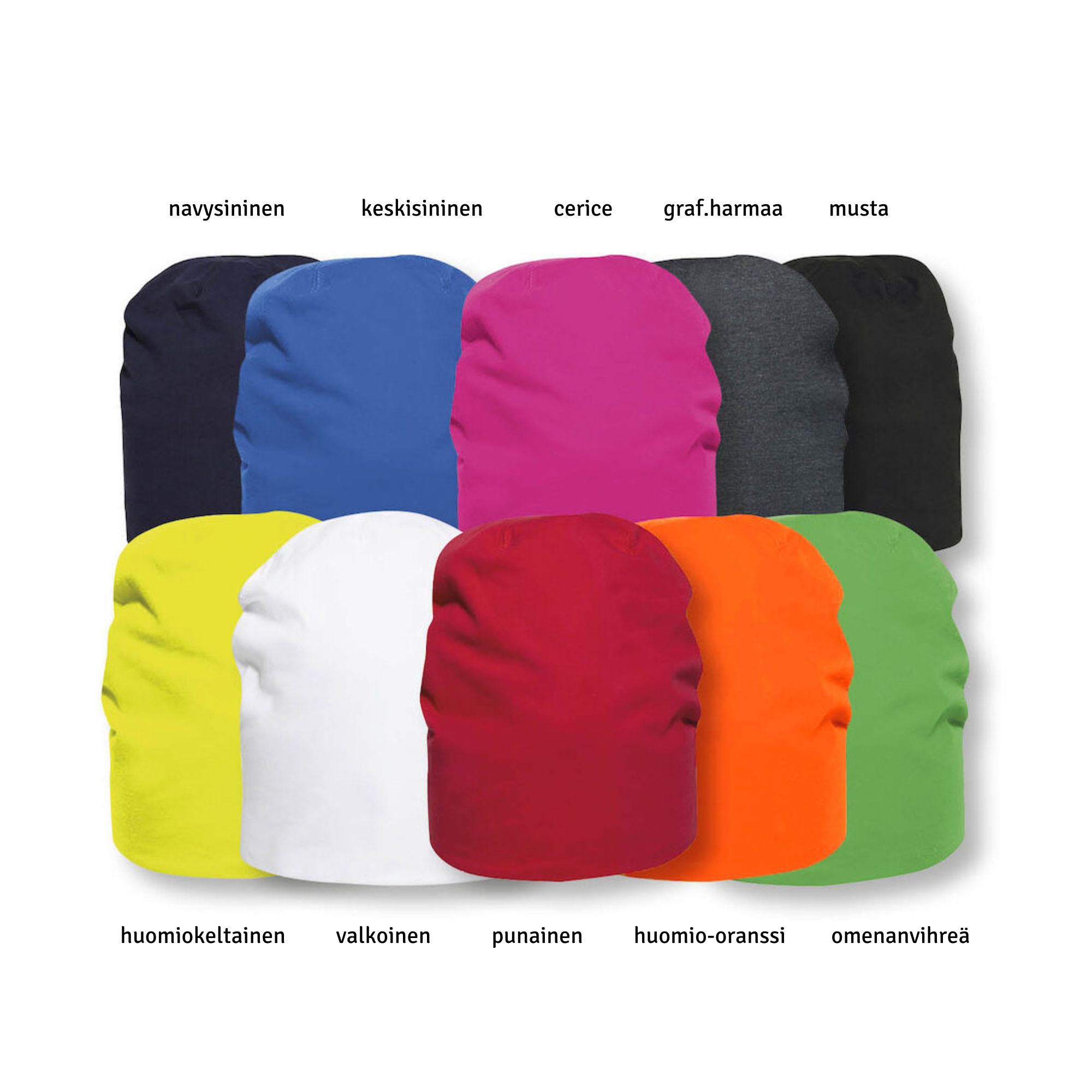 | Väri | Musta (99), Navy (580), Punainen (35), Valkoinen (00), Antrasiitti (955), Omenanvihreä (605), Keskisininen (55), Cerise (300), Huomiokeltainen (11), Huomio-oranssi (170) |
